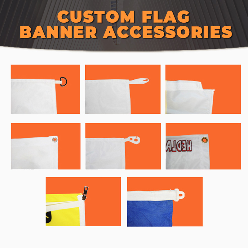 You can freely choose the position of the header for your header flag, and the flag header can be on the left, on the right, on the top, and on the bottom. Also, we have different fabric options for the pole pocket, you can choose according to your preference.